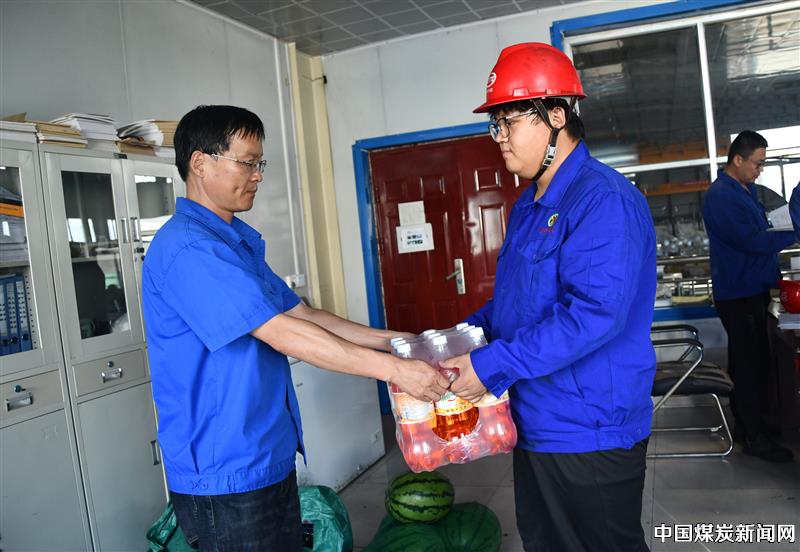 该公司积极开展防暑降温安全知识教育,增强职工对中暑征兆的判断、急救和预防知识,提高职工在高温作业环境下自我保护能力。注重作业现场的巡查,有效掌握职工精神状态,针对高温岗位作业人员,及时调整作息时间,实施错时避高温措施,防止职工中暑,全力为职工创造良好工作环境。 ![]() 图(2)车间负责人为班组分发饮料