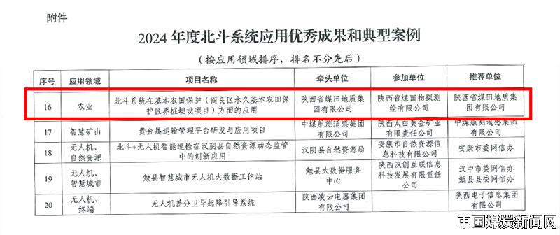 | 陕煤地质物测公司北斗农田保护项目成功入选省级优秀成果 | |||