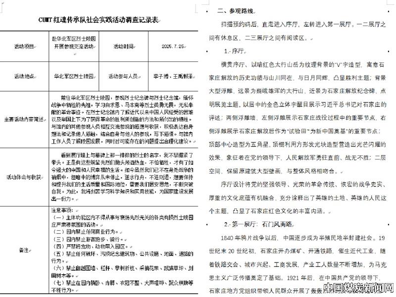 【本网讯】2025年7月23日和25日,中国矿业大学“CUMT红魂传承队”的4名成员先后走进石家庄解放纪念馆和华北军区烈士陵园,开展为期两天的红色基地研学实践活动。此次活动旨在通过实地参观、史料研学和交流沟通,深入了解华北地区解放战争历史与革命英烈事迹,呼吁更多群众关注石家庄红色历史文化。