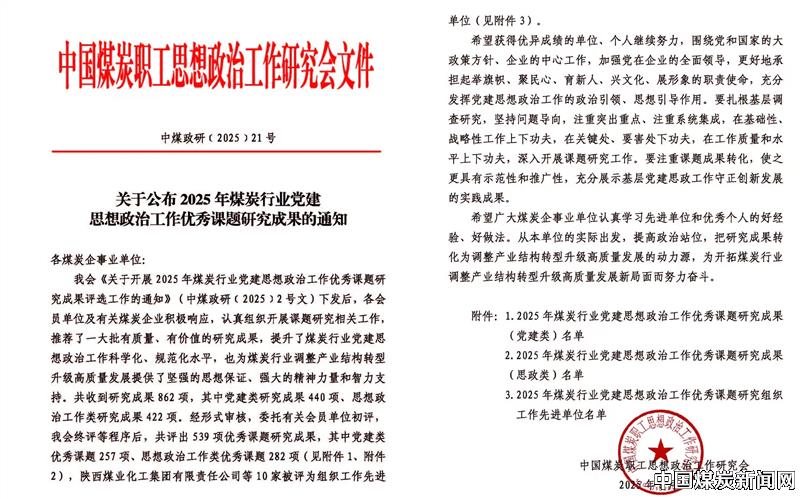 【本网讯】近日,中国煤炭职工思想政治研究会公布2025年煤炭行业党建思想政治工作优秀课题研究成果,河南义煤公司新安煤矿工会报送的《做强做优工会工作品牌 答好服务职工时代课题——积极打造“13441”工作品牌 实现工会工作高质量发展的实践和创新》获得2025年煤炭行业党建思想政治工作优秀课题(思政类)二等奖。![]() ![]() 自接到《关于开展2025年煤炭行业党建思想政治工作优秀课题研究成果评选工作的通知》后,新安煤矿工会高度重视,积极响应,认真组织开展课题研究相关工作,撰写并推荐了有质量、有价值的高质量研究成果,推动了工会工作的创新和工运事业的发展,提升了煤炭行业党建思想政治工作科学化、规范化水平,也为煤炭行业调整产业结构转型升级高质量发展提供了坚强的思想保证、强大的精神力量和智力支持。共收到研究成果862项,其中党建类研究成果440 项、思想政治工作类研究成果422 项。经形式审核、初评、终评等程序后,共评出539项优秀课题研究成果,其中党建类优秀课题 257项、思想政治工作类优秀课题282项。