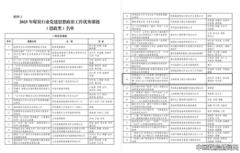 | 参加2025年煤炭行业党建思想政治工作优秀课题研究成果获二等奖 | |||