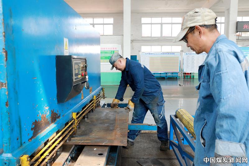 该系统进料输送平台由主体框架、滚动组件、电力驱动组件、手动驱动组件等组成,利用驱动组件和滚动组件的联动配合,推动钢板向前压紧剪切。通过点动遥控调节进料速度进行批量固定尺寸的钢板切割。主体框架使用方钢和扁铁加固焊接,平台设计高度与剪板机工作台一致,滚动组件主体框架上部依次安装托辊作为驱动滚轮,电力驱动组件由电源控制箱、电动机、遥控器、指示灯、行程开关、减速轮、传送皮带等组成。 在操作剪切批量固定尺寸的钢板时,切换到电力驱动模式下,将钢板放置平台上,与剪板机工作台对正,点动遥控调节驱动滚轮转动,即可实现钢板的快速输送剪切;剪切少量或小部分尺寸不固定的钢板时,切换到手动驱动模式下,转动驱动滚轮进行尺寸微调,即可实现钢板的输送剪切。出料滚动平台利用滚动轴承转动,实现出料钢板的自动滚动下滑和装车运输,减少人工扒钩和搬抬程序,杜绝手脚压伤隐患,大大降低了劳动强度,提高了安全操作系数。 近年来,兴隆庄煤矿持续深化全员创新工程,统筹推进管理创新、技术创新、科技创新,对职工创新行动、产生效益和推广应用情况进行技术指导和现场审核。紧紧围绕安全管理、质量提升、自主改善、创新创效,引领职工广泛开展“全员创新·岗位增效”“五小”等群众性技术创新活动,推行立项、评价、培育、推广机制,确保创新成果见实效,为矿井高质量发展注入创新动力。