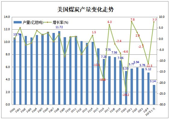 | 2025年1-7月美国煤炭产量同比增长7.7% | |||