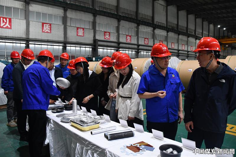 吴丽敏一行在现场调研中,先后深入山西兆丰铝电电解铝分公司的电解车间和山西兆丰天成铝材公司的铸轧车间、冷轧车间进行调研,由山西兆丰铝电公司党委副书记、总经理郭福宝,山西兆丰铝电公司副总经理,山西兆丰天成铝材公司党支部书记、董事长伍小军介绍了电解铝与铝精深加工的生产、工艺、技术等情况,特别是汇报了铝产业链一体化项目建设对铝电产业高质量发展的重大意义,希望省政府决策咨询委员会办公室提供有力支持,助力铝产业做大做强做精,为转型高质量发展贡献力量。现场观摩了铝精深加工铝箔产品的品种样板,听取讲述铝精深加工生产的工艺流程,通过实地调研、观摩了解,共同探讨交流产业发展目标,加强沟通协调,保持密切联系,积极培养新质生产力,加快新项目建设步伐,促进产业转型升级。 ![]() 图(2)在生产厂区走动调研 ![]() 图(3)参观铝精深加工产品样板