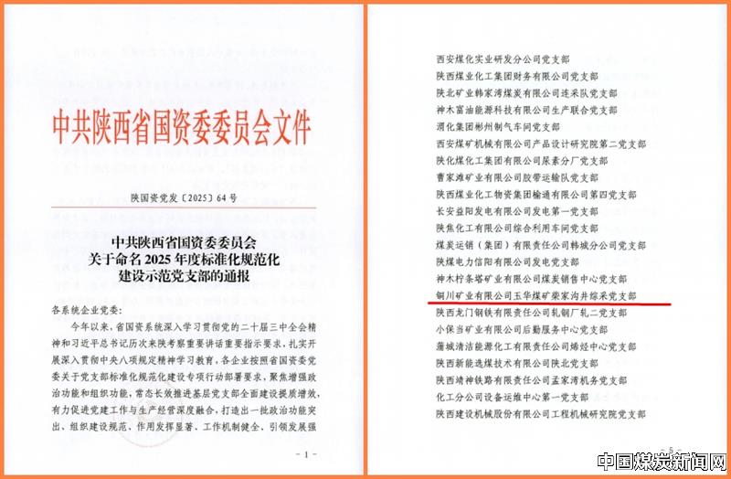 【本网讯】近日,陕西省国资委党委印发了《关于命名2025年度标准化规范化建设示范党支部的通报》,公司柴家沟井综采队党支部被评为标准化规范化示范党支部。