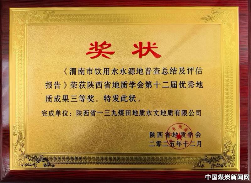 | 陕煤地质一三九水文公一项目成果荣获优秀地质成果奖 | |||