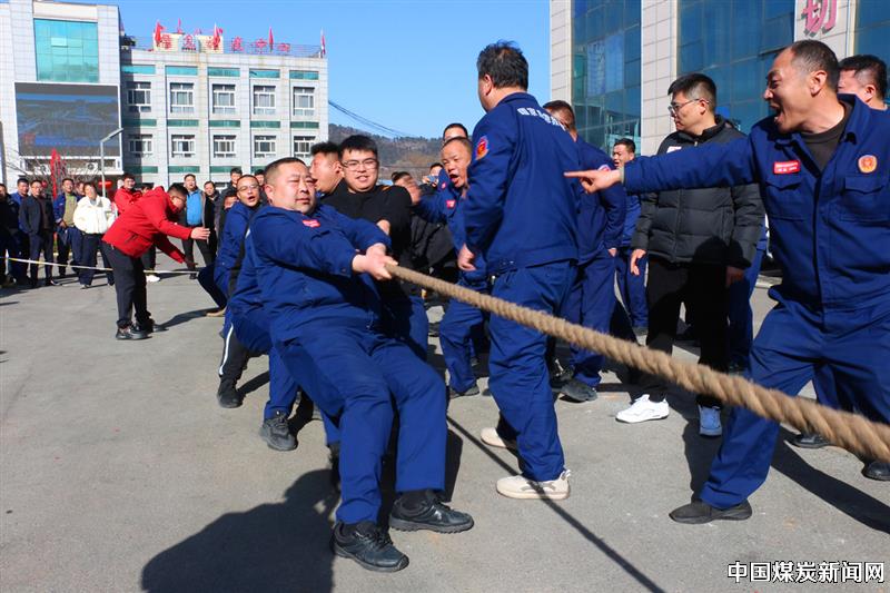 该矿举行“迎新春度佳节”拔河比赛,全矿业务部门、基层区队联合组建了14支参赛队伍,通过抽签确定对阵分组,采用淘汰制与三局两胜制比赛。 比赛开始!首轮较量十分激烈,上届比赛冠亚军在小组相遇,由于知根知底,双方队员一上场便紧握长绳,咬紧牙关,个个扎好马步,身体后仰。哨声响起,两队均使出“洪荒之力”,抱着必胜决心,倾全力于一身,集合力于一绳,全力以赴投入比赛,为集体荣誉而顽强拼搏。
