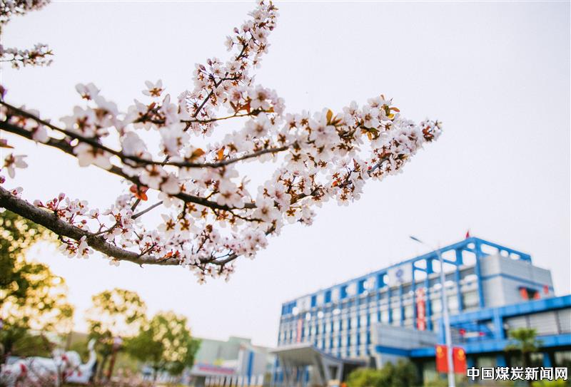 漫步矿区主干道,粉白的樱花缀满枝头,层层叠叠的花瓣在微风中轻颤,偶有花瓣飘落,化作漫天花雨,为往来的通勤路晕染出温柔诗意;不远处的桃林里,桃花迎着暖阳肆意绽放,嫣红、粉白的花朵缀满枝桠,与新抽的嫩绿枝叶相映成趣,尽显春日鲜活气息。枝头雀鸟穿梭啼鸣,与井下传来的机器轰鸣交织,奏响工业与自然共生的春日乐章。