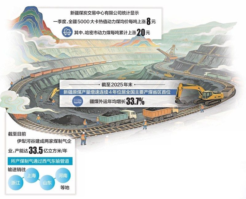 ![]() 受地缘政治局势影响,国际油价高企,带动全球甲醇、烯烃等重点化工产品普涨。煤炭作为重要能源和化工原料,经济性凸显,市场热度骤升,“煤超疯”卷土重来。 我国能源特点是“富煤贫油少气”。新疆煤炭预测资源总量2.19万亿吨,占全国煤炭资源总量的40.6%。对于油气主要依靠进口的中国而言,新疆煤炭的后备支撑作用愈发明显。 进入3月以来,新疆大型露天煤矿开足马力生产,部分矿坑再现运输车辆排长队购煤场景。各煤化工企业也满负荷生产,订单纷至沓来,呈现出一派繁荣的“春日盛景”。 再启新程疆煤外运开拓新通道 历史总是惊人的相似。时隔四年多,新疆准东经济技术开发区内,再现运输车辆排长队拉煤场景。 “现在,每天有1000多辆车排队拉煤,比2月份多三四百辆。”中联润世新疆煤业有限公司销售人员宋志远说,近期疆外化工、水泥用煤需求强劲。 受国际原油价格影响,进入3月以来,国际煤炭价格快速上涨。历经一年多低位徘徊的新疆煤炭价格小幅回升,由此带动市场采购情绪高涨,准东开发区、哈密市白石湖、石头梅等主要矿区出现车辆排队拉煤盛况。 新疆煤炭交易中心有限公司统计显示,一季度,全疆5000大卡热值动力煤均价每吨上涨8元,其中哈密市动力煤每吨累计上涨20元。“通常情况下,每年3月份是新疆煤炭销售淡季,今年淡季不淡,价格坚挺。”新疆煤炭交易中心有限公司副总经理张奎说。 对比2021年煤炭价格上涨,当时我国经济快速复苏,新疆服务全国能源保供大局,创新公铁联运、公铁水联运等多种煤炭运输方式,推动疆煤外运行稳致远,最多时覆盖全国20余个省区市,对保障全国能源安全作出重要贡献。 而在此次煤炭价格上涨过程中,全球最大动力煤出口国印度尼西亚等国家收紧煤炭出口政策,使得国内主要港口进口煤炭价格优势消失,甚至出现价格倒挂情形。 3月26日,首列满载哈密石头梅一号煤矿煤炭的专列缓缓启程,一路南下直达浩吉铁路入湘首站——岳阳松木桥站。在湘新两地大力支持下,新疆哈密三塘湖能源开发建设有限责任公司成功打通新疆矿区至岳阳松木桥站的直达运输通道,开辟出“疆煤入湘”又一条新通道。 3月31日起,新疆天池能源有限责任公司、国家能源集团新疆能源化工有限公司、新疆能源(集团)有限责任公司、伊吾广汇矿业有限公司、新疆宜化矿业有限公司等主要煤炭生产企业,前往甘肃、宁夏、湖北、河南、重庆、四川等地,积极对接市场需求,争取在全国能源保供大局中发挥更大作用。 截至2025年末,新疆原煤产量增速连续4年居全国主要产煤省区首位,疆煤外运年均增长33.7%。为推动疆煤外运扩能增效,新疆正强化由兰新、临哈、格库铁路构成的“一主两翼”铁路运输体系建设。目前,格库铁路扩能改造工程、将淖铁路增建二线工程正加快建设,临河至哈密铁路扩能改造等重点疆煤外运项目已纳入国家“十五五”规划纲要。 作为疆煤外运北翼铁路通道重要组成部分的淖毛湖至梧桐水铁路新建工程,已于3月23日通过自治区首次环境影响评价公告公示,预计2027年开工建设。 “锚定党中央赋予新疆的‘五大战略定位’,新疆持续拓展疆煤外运通道,为保障全国能源供应筑牢安全底线。”西部能源研究院院长、新疆大学研究生院院长王文峰表示。 机遇凸显煤化工项目加速上马 中东局势不仅影响油价,还波及甲醇、烯烃等化工产品市场。近期,全球化工巨头巴斯夫、瓦克化学等纷纷上调化工产品售价,受此影响,我国聚丙烯、苯乙烯、丙烯、甲醇、乙二醇等主要化工产品价格走高,刺激化工企业开足马力生产。 “我们以煤为基础原料,主要生产甲醇、乙二醇、煤焦油等化工产品,受中东局势影响,各化工产品价格都有较大幅度上涨。”新疆广汇化工销售有限公司负责人王鑫强说,这是近4年来最好行情,企业抓住当前市场机遇,实现化工产品全产全销。 新疆宜化化工有限公司以煤为原料生产尿素、聚氯乙烯等产品。此前,该公司产品疆外主要销往华中、华东、华南地区。今年国际市场需求强劲,3月26日,该公司的聚氯乙烯从新疆出发,首次搭乘西部陆海新通道专列出口至越南。 “国际油价是决定煤化工竞争力的关键变量。当国际油价高于60美元/桶时,煤制油气、煤制烯烃、煤制甲醇等煤化工产品成本优势开始显现;当国际油价高于80美元/桶时,相比石油化工,煤化工具备显著成本优势,会推动煤化工企业加快生产、煤化工项目加快建设,大幅提升原料用煤需求,带动本地煤炭就地转化,让更多煤炭从燃料变为原料,实现产业价值跃升。”中国石油和化学工业联合会煤化工专委会副秘书长王秀江表示,油价高企,为新疆煤化工发展带来了难得机遇。 当前,国际油价已冲破100美元/桶,我国成品油价格3月完成两次上调。油价快速上涨,直接推动伊泰伊犁能源有限公司100万吨/年煤制油示范项目、国家能源集团哈密能源集成创新基地项目等煤制油项目加快建设步伐。 以前瞻性思维系统布局产业,早在“十二五”时期,新疆就启动煤制气项目建设。截至目前,已在伊犁河谷建成两家煤制气企业——新疆庆华能源集团有限公司和伊犁新天煤化工有限责任公司,产能达33.5亿立方米/年,所产煤制气通过西气东输管道输送销往浙江、上海、山东、河南等地。以起步即冲刺的态势,准东开发区的特变电工新疆准能化工有限公司20亿